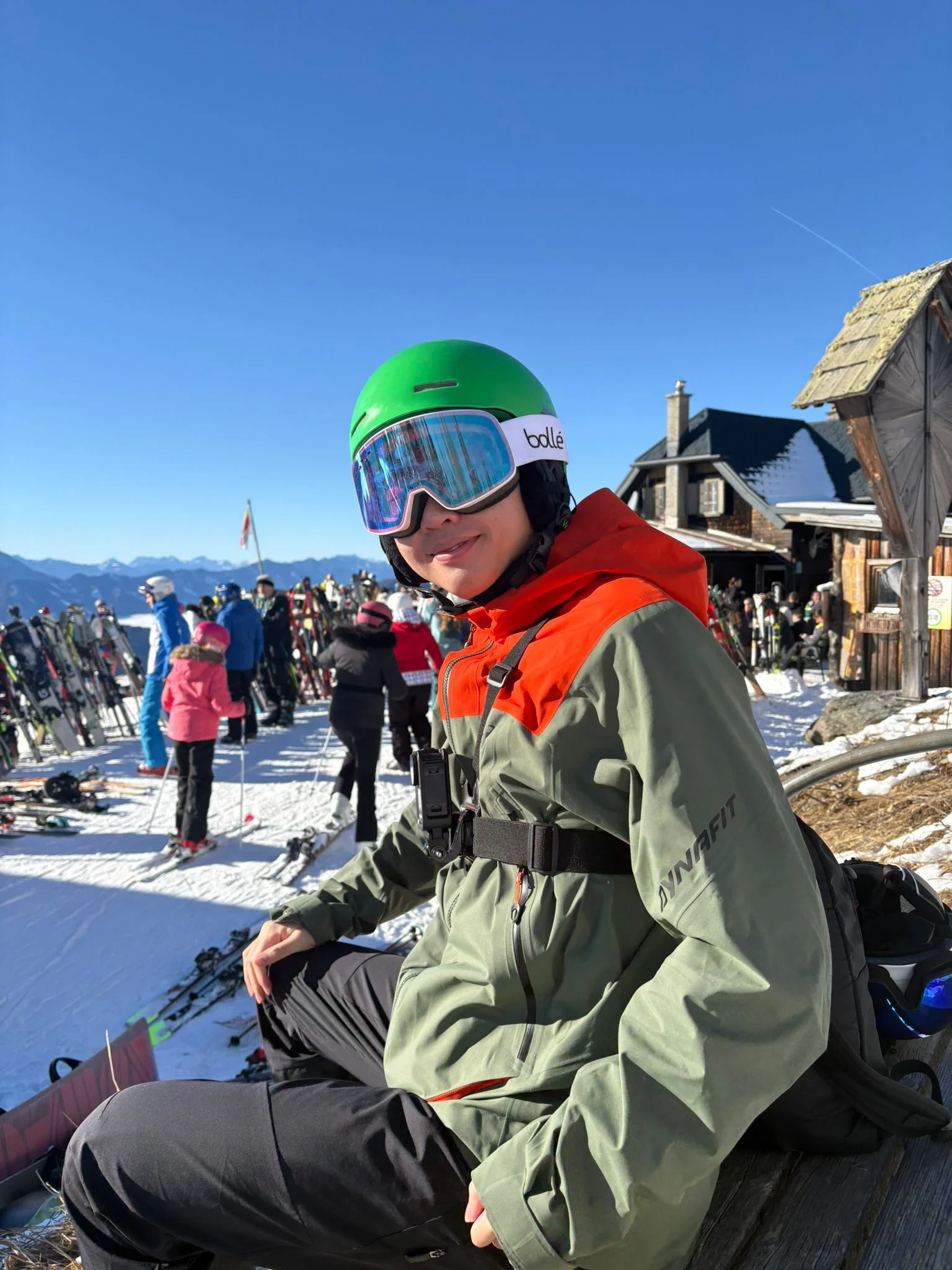 不過到了隔天,朋友決定去另一個雪場,才滑過一個下午的我們在初學者的區域簡單熱身、複習之後,決定直接搭著貢多拉纜車攻頂,「挑戰」這個雪場最初階的藍色等級的雪道1。嗯⋯⋯也許太高估了自己,但是跌了幾次、暫停休息幾次之後也終於完成了人生第一個藍色雪道。不過,前陣子去了另外一個菲拉赫(Villach)附近的雪場,才短短兩天,滑行紅色雪道已經得心應手了!所以我才說,雙板真的很適合剛接觸滑雪的人。